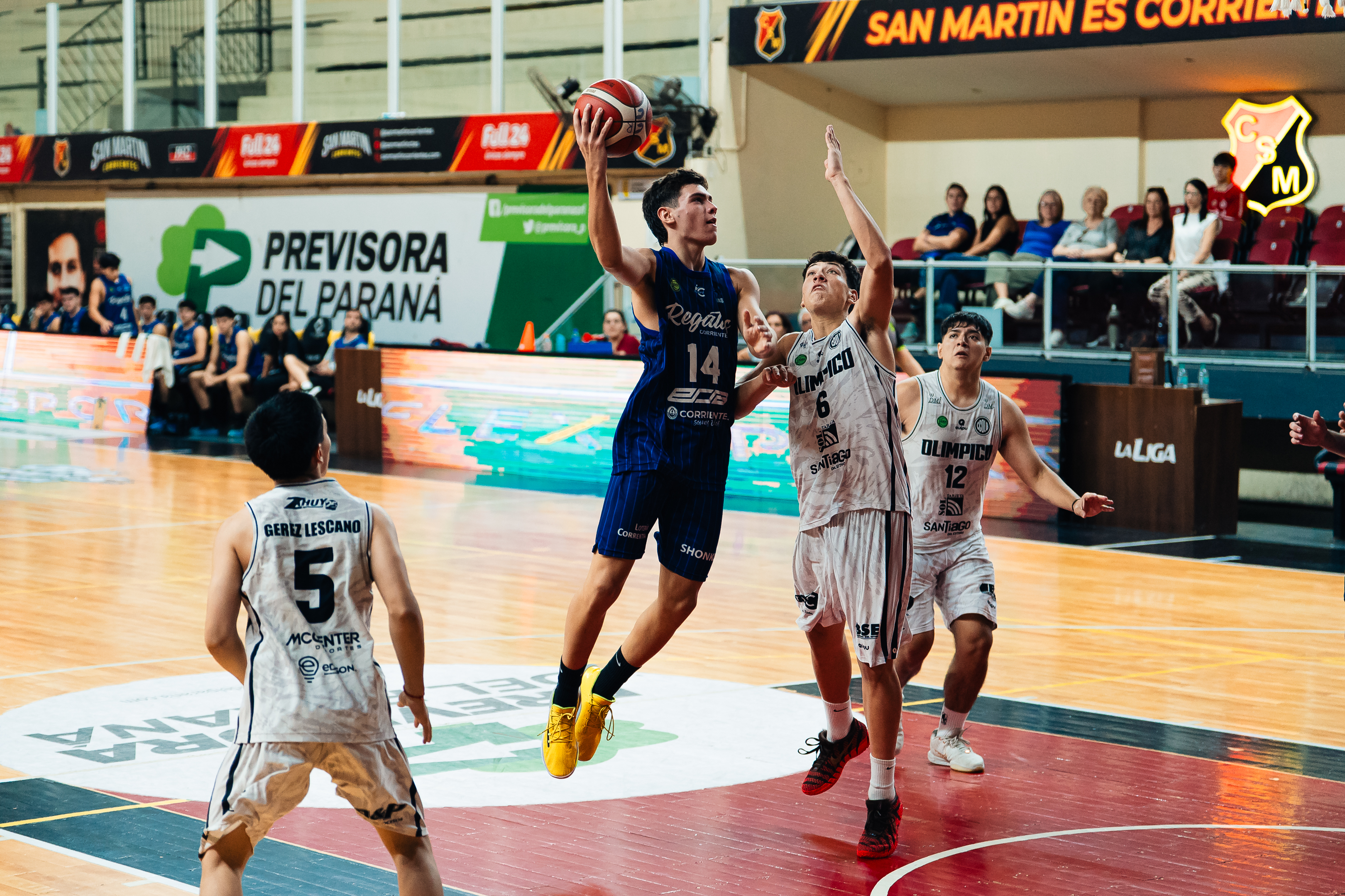 Regatas tuvo 11 manos anotadoras, donde se destacaron Exequiel Lezcano y Juan Cruz Ferreyra con 14 puntos cada uno, 13 de Luca Dascenzo, 12 de Emiliano Sona y 11 de Ignacio Ojeda. En la visita el más destacado fue Martín Pérez con 17 y Jeremías Barco con 12.