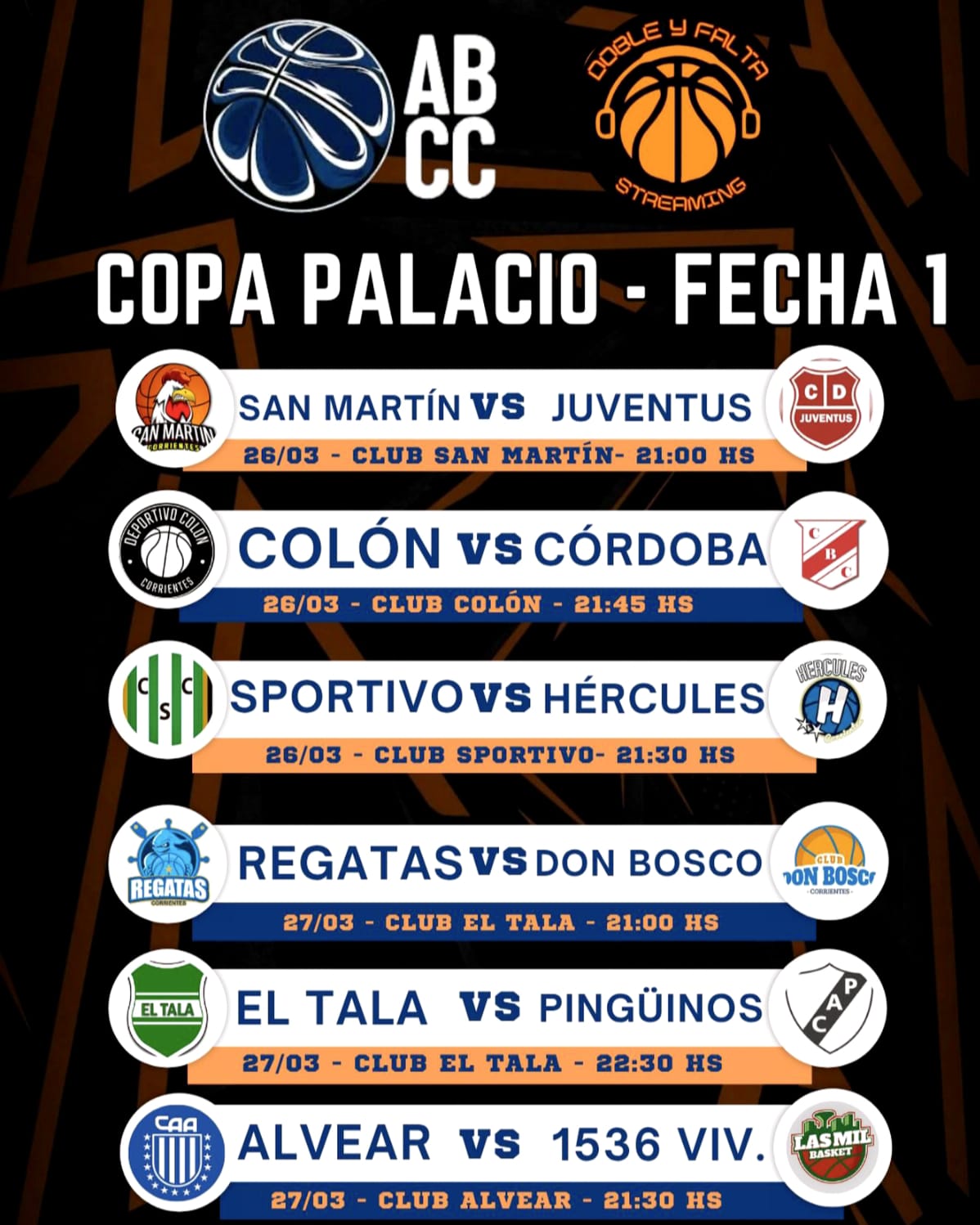 La Copa Palacio 2026 levanta el telón y marca el regreso de la competencia oficial en el básquet metropolitano, con una primera fecha que promete ritmo, paridad y múltiples focos de interés. El salto inicial se dará este 26 de marzo con una programación intensa que incluye tres encuentros, mientras que la jornada se completará el 27 con otros tres duelos, configurando un arranque atractivo para los aficionados.
